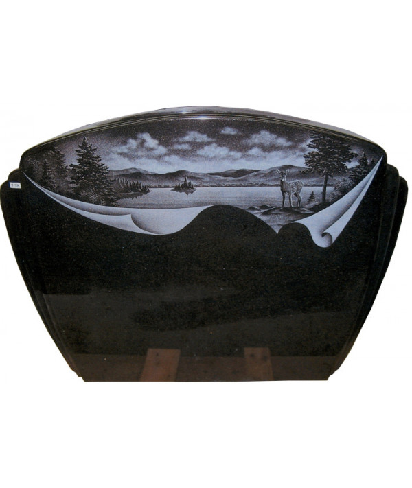 Ce monument funéraire fait entièrement de granit noir de haute qualité aux formes arrondies, vous offre un magnifique paysage de la nature gravé à la main directement sur la pierre. Parce que lêtre cher mérite ce quil y a de mieux.