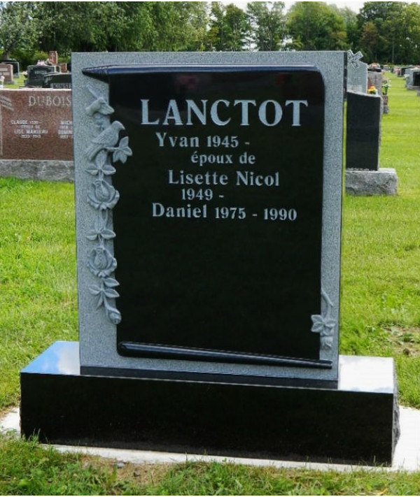 Un monument funéraire dans un granit noir de haute qualité , reste depuis toujours un symbole délégance. Cest la seule couleur qui nous permet dutiliser la technique au burin, afin de personnaliser sans aucune limite , lhommage à lêtre aimé (voir notre section etching)