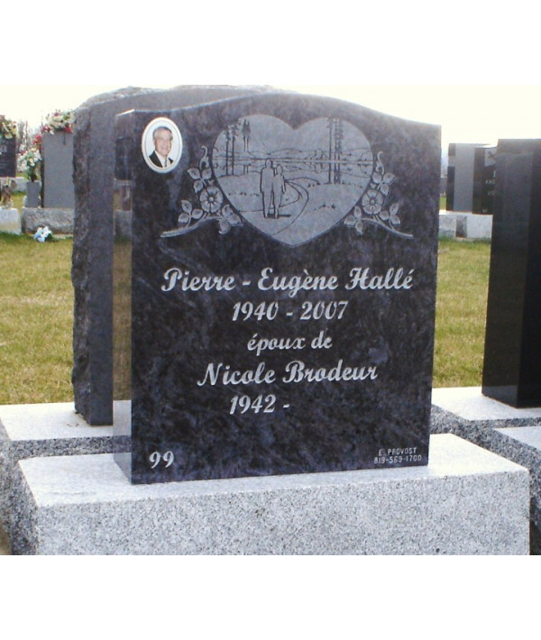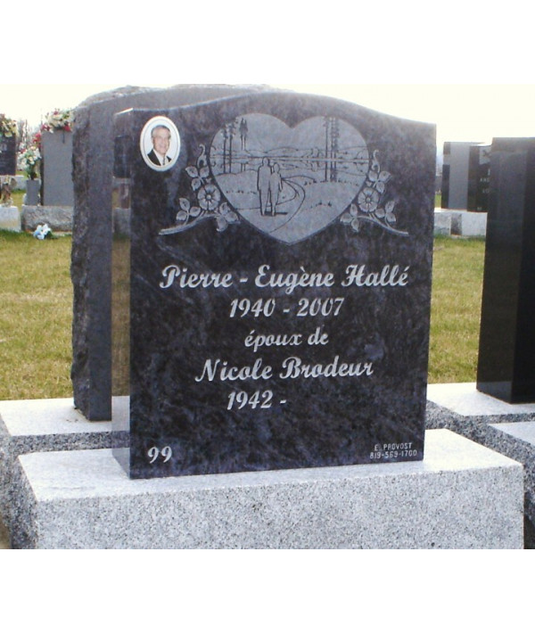 Dans 1 granit dune couleur distinctive et unique , ce monument funéraire se distingue par la sobriété de son contour et par lélégance de son dessin et de sa gravure. Pour personnaliser un peu plus , quoi de mieux que la photo de lêtre cher sur 1 porcelaine de haute qualité , garanti à vie contre la décoloration .