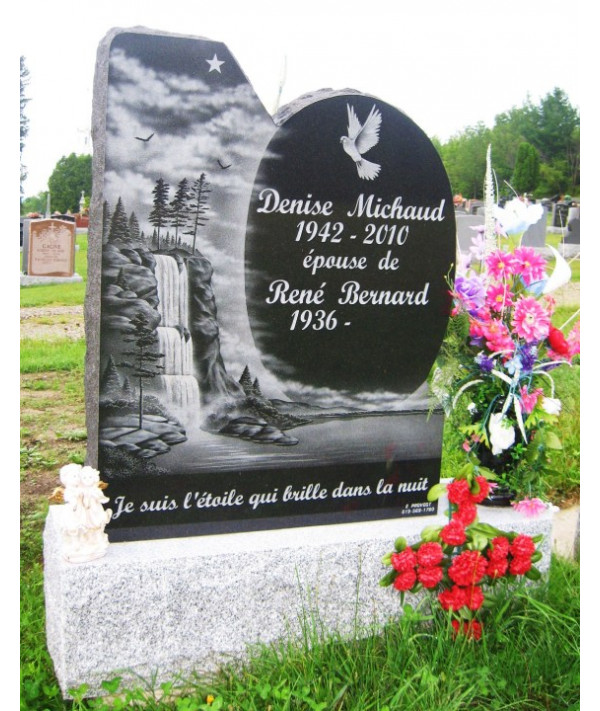 Un magnifique monument de couleur noir vous présentant un paysage de cascade d'eau fait entièrement à la main.