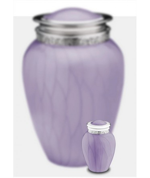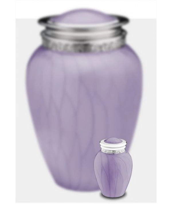 L'urne Tendre Hommage Lavande (Reliquaire) présente une finition nacrée lisse appliquée à la main, ornée d'une magnifique bande gravée à la main autour du couvercle de l'urne. Le design épuré et créatif de cette urne présente une curieuse combinaison d'éléments classiques et modernes. C'est une urne magnifique qui créera un mémorial paisible et chaleureux pour votre être cher.