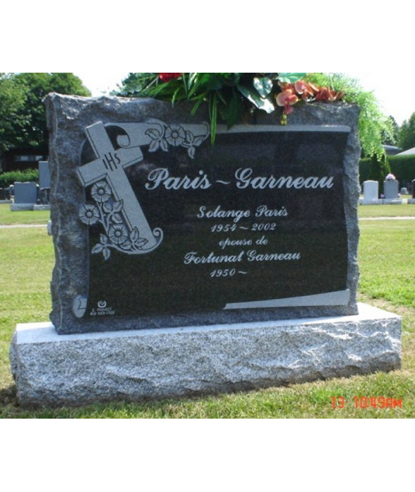 Une pièce de granit très traditionnelle vous présentant l'alliance d'une croix et des fleurs.