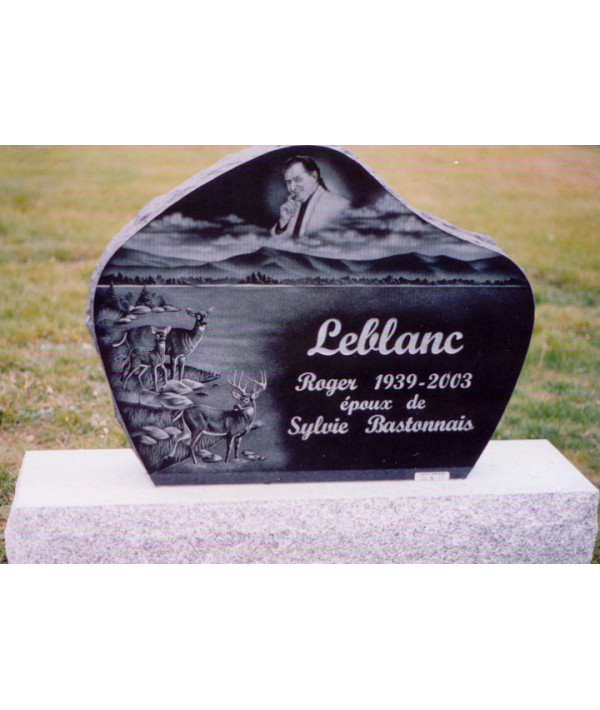 Un monument en granit noir représentant une scène de toute beauté d'un moment capté sur le vif.