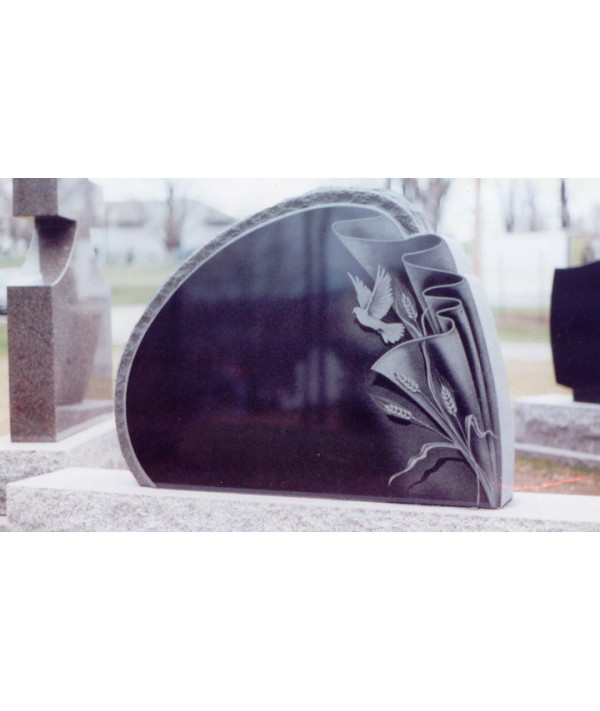 Ce monument funéraire à la forme ovale a été taillé dans un granit noir de première qualité, Il a été poli en façade en usine et limage représenté est gravé à la main à laide dun burin. Une pièce magnifique et carrément unique pour la personne qui létait tout autant.