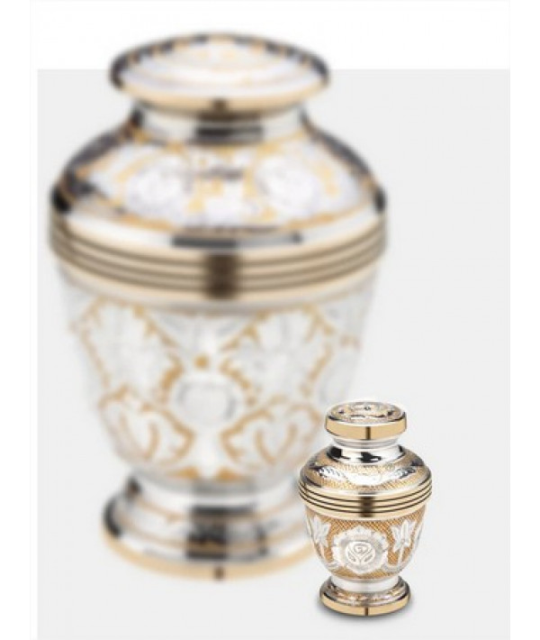 Admirez la splendeur exquise de cette urne impériale. La Jali du Monarque est gravée et embellie avec des teintes d'or et d'argent pour un charme d'antan. Un graveur qualifié met jusqu'à trois jours pour graver une urne.