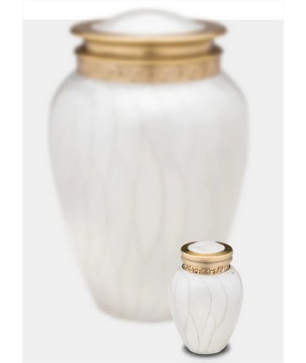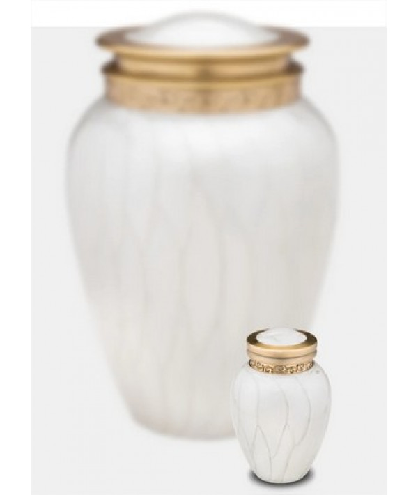 L'urne Tendre Hommage Nacré présente une finition nacrée lisse appliquée à la main, ornée d'une magnifique bande gravée à la main autour du couvercle de l'urne. Le design épuré et créatif de cette urne présente une curieuse combinaison d'éléments classiques et modernes. C'est une urne magnifique qui créera un mémorial paisible et chaleureux pour votre être cher.