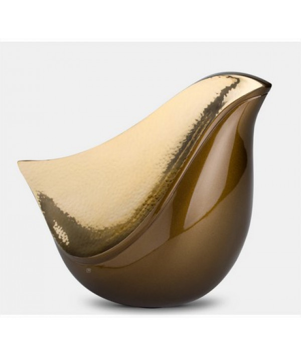 Cette urne sereine en forme d'oiseau évoque le sentiment d'amour. Fabriquée à la main en laiton massif, elle se courbe doucement, en étain brossé avec une couleur étoilée de minuit, et en laiton martelé chatoyant avec un ton bronze. Deux de ces urnes ensemble créent la position câline des Oiseaux d'amour.