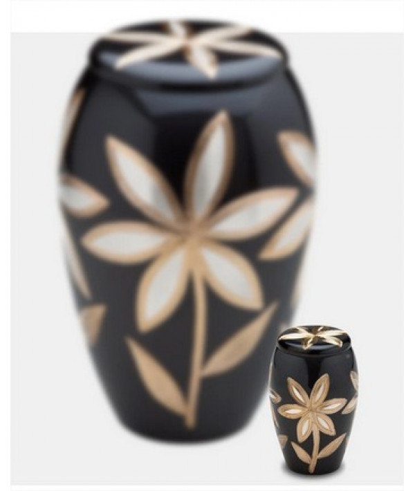 Les lys fleurissent à la surface de ces urnes, ce qui les rend magiques et uniques en leur genre. L'époustouflante gamme de tons est obtenue par une combinaison d'étain antique électroplaqué, de peinture et de gravure à la main, minutieusement réalisée avec un alignement parfait, l'une sur l'autre, pour produire ce chef-d'œuvre.