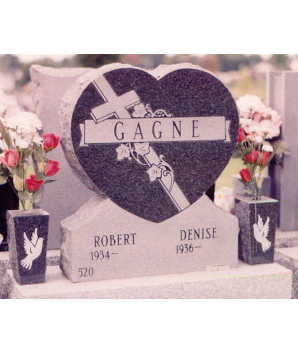 Un somptueux coeur sculpté dans un granit de couleur Britz bleu.