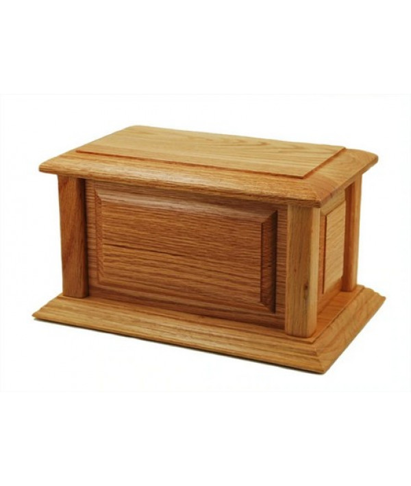 Cette urne rectangulaire de forme classique est fabriquée en bois de chêne massif.