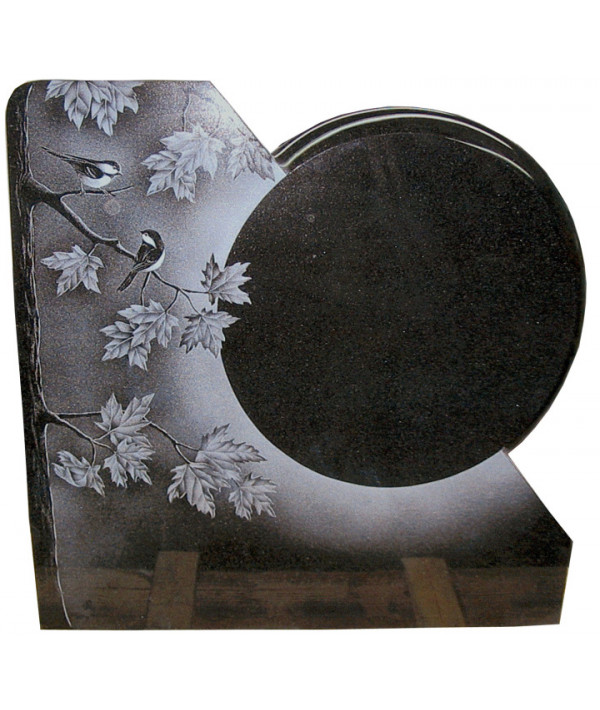 Ce monument funéraire aux formes arrondies est composé de granit de couleur noire de la plus haute qualité, vous offrant une surface polie sur tous les côtés, ayant pour image un merveilleux paysage de nature composé doiseaux et de branches. La surface arrondie vous permet dinscrire le nom de lêtre cher.