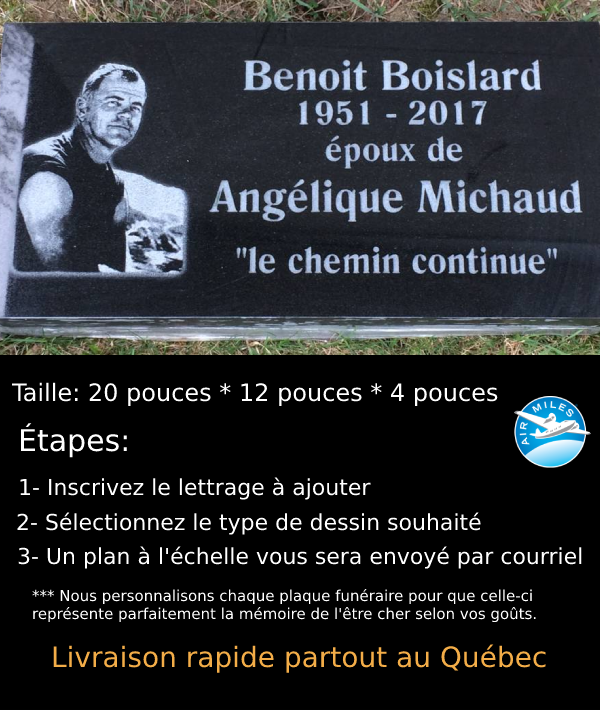 Plaque funéraire de couleur noire, comportant un procédé tout à fait unique de gravure au burin pouvant comporter la reproduction de votre choix (portrait, paysage, voiture etc.) Cette plaque doit obligatoirement avoir une surface polie et aussi être utilisé sur un granit de couleur noir afin d'obtenir un contraste adéquat.