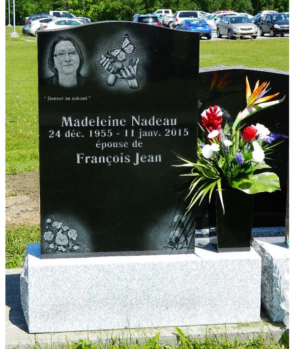Ce monument est un très bel exemple de ce que Monuments funéraires est capable de réaliser. Un monument représentant en tout point la personne décédée agrémenté dun superbe vase de granit.