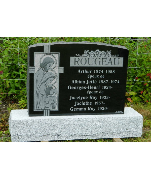 Monument de granit noir de dimension de 36"x30". Notez que ce type de granit vous permet dinclure une image gravée au jet de sable ou encore une gravure à la main.