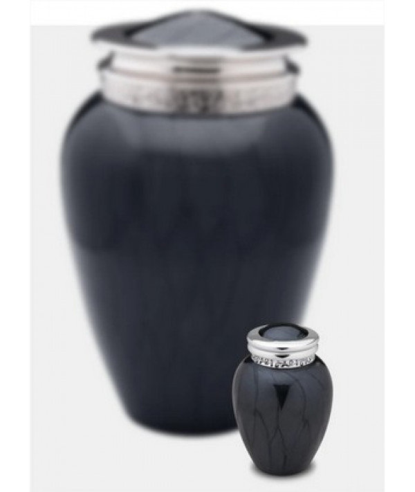 L'urne Tendre Hommage Minuit (Reliquaire) présente une finition nacrée lisse appliquée à la main, ornée d'une magnifique bande gravée à la main autour du couvercle de l'urne. Le design épuré et créatif de cette urne présente une curieuse combinaison d'éléments classiques et modernes. C'est une urne magnifique qui créera un mémorial paisible et chaleureux pour votre être cher.