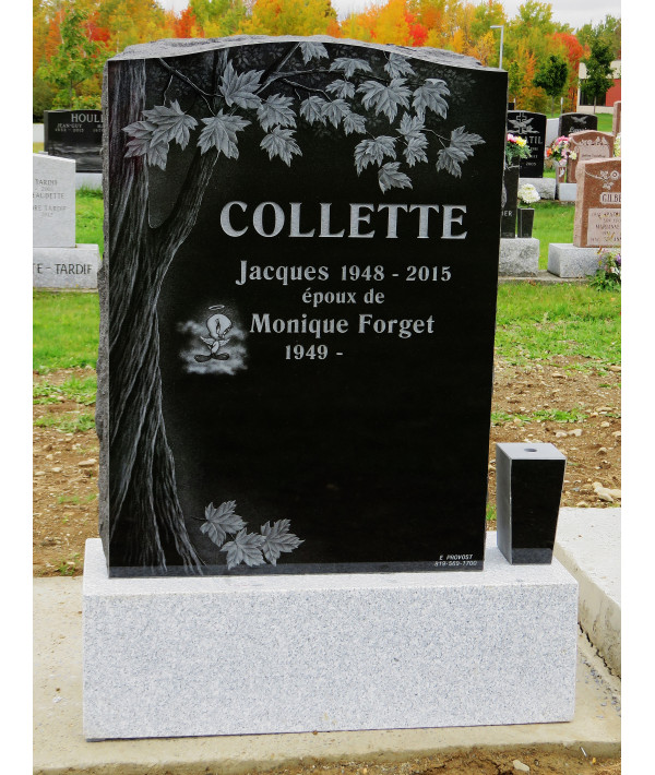 Monument de granit noir vous permettant de faire graver une image, le portrait dune personne ou encore le paysage de votre choix afin quil vous soit personnalisé.
