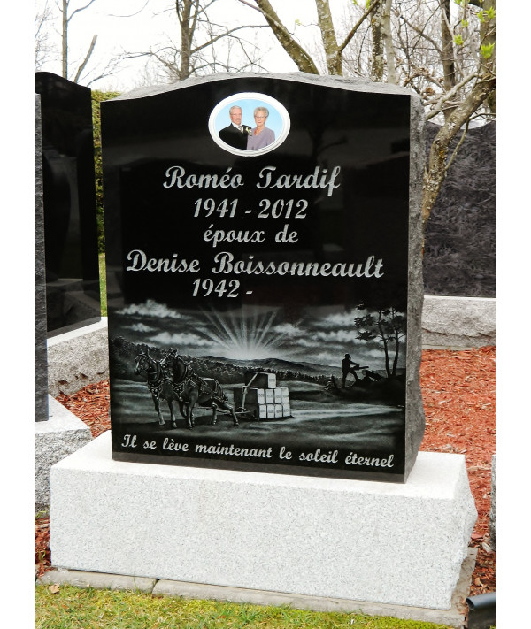 Ce monument gravé à la main dans un granit noir de première qualité vous offre un résultat tout simplement spectaculaire.
