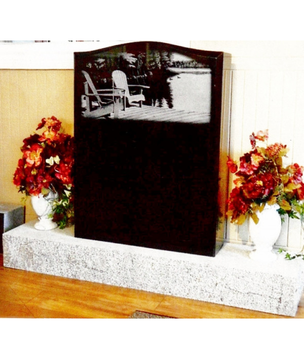 Monument en granit noir représentant le calme et la sérénité d'une journée parfaite au bord de l'eau.
